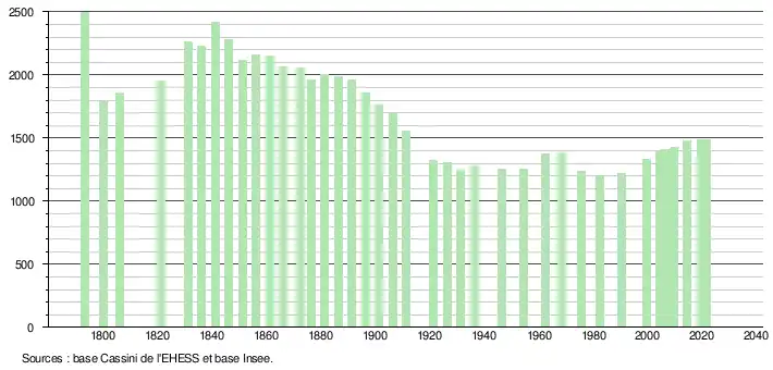 1 485 hab. (2021 en diminution de 0,27 % par rapport à 2015)