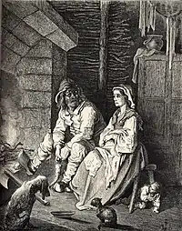 « Il les tira de dessous le lit, l'un après l'autre. » Illustration de 1867 de Gustave Doré. | ||||||||