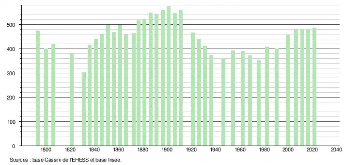- Fiches Insee - Populations légales de la commune pour les années 2006, 2007, 2008, 2009, 2010, 2011, 2012, 2013, 2014, 2015, 2016, 2017, 2018, 2019, 2020 et 2021.