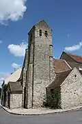 - La tour de la rue de l'Église : Accolée à l'angle d'une maison au sud de l'église, cette tour est ronde jusqu'au-dessus du premier étage, puis se termine par un demi-étage octogonal et un toit à huit versants. Il est possible que la tour ait fait partie d'une muraille d'enceinte autour du promontoire sur lequel est bâti l'église, mais l'origine du bâtiment reste incertaine[32].