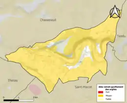Le retrait-gonflement des sols argileux est susceptible d'engendrer des dommages importants aux bâtiments en cas d’alternance de périodes de sécheresse et de pluie. 91 % de la superficie communale est en aléa moyen ou fort (84,7 % au niveau départemental et 48,5 % au niveau national). Sur les 559 bâtiments dénombrés sur la commune en 2019, 493 sont en aléa moyen ou fort, soit 88 %, à comparer aux 86 % au niveau départemental et 54 % au niveau national. Une cartographie de l'exposition du territoire national au retrait gonflement des sols argileux est disponible sur le site du BRGM[23],[24].