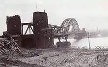 Quand le major Kruger ordonne de faire sauter le pont, rien ne se passe car des conduites ont été sectionnées. Il ordonne à des soldats d'amorcer le dispositif de secours. Le pont saute dans un grand nuage de fumée, mais quand celui-ci se dissipe, on voit que l'essentiel du pont est toujours en place, car les explosifs étaient trop faibles pour détruire complètement le pont.