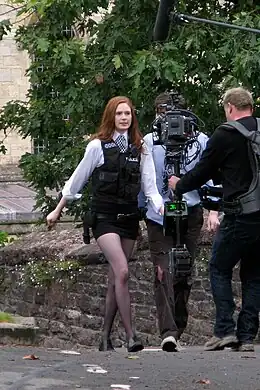 Les scènes réunissant Amy Pond dans son costume de policière sexy et le onzième Docteur portant encore la tenue du dixième Docteur furent tournées à Cardiff en [10],[11].