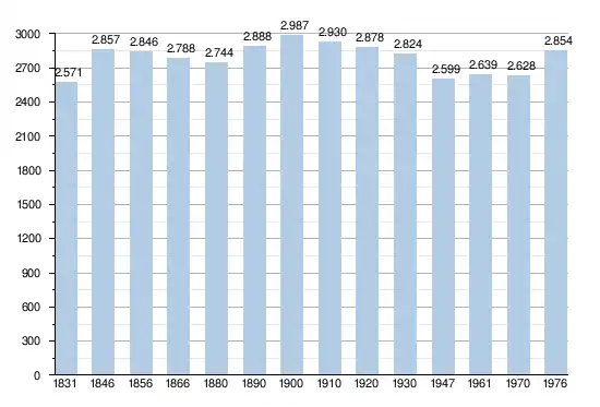 Les chiffres des années 1831 à 1970 tiennent compte des chiffres des anciennes communes fusionnées.