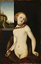 - (en) Cet article est partiellement ou en totalité issu de l’article de Wikipédia en anglais intitulé « The Suicide of Lucretia (Dürer) » (voir la liste des auteurs).