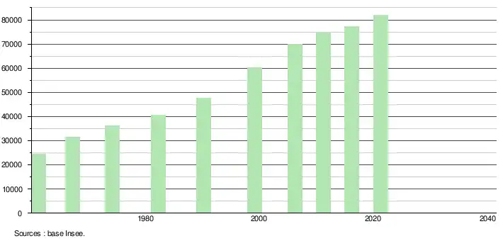 L'évolution du nombre d'habitants est connue à travers les recensements de la population effectués dans la commune depuis 1961, premier recensement postérieur à la départementalisation de 1946. À partir de 2006, les populations légales des communes sont publiées annuellement par l'Insee. Le recensement repose désormais sur une collecte d'information annuelle, concernant successivement tous les territoires communaux au cours d'une période de cinq ans. Pour les communes de plus de 10 000 habitants les recensements ont lieu chaque année à la suite d'une enquête par sondage auprès d'un échantillon d'adresses représentant 8 % de leurs logements, contrairement aux autres communes qui ont un recensement réel tous les cinq ans[13],[Note 3].