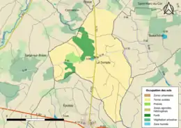 L'occupation des sols est marquée par l'importance des espaces agricoles et naturels (100 %). La répartition détaillée ressortant de la base de données européenne d'occupation biophysique des sols Corine Land Cover millésimée 2012 est la suivante : terres arables (89,9 %), prairies (0,5 %), forêts (10,1 %)[15].