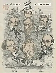 Après un premier numéro paru le , Le Tintamarre est définitivement lancé le suivant par Jules Lovy et Auguste Commerson, respectivement rédacteur en chef et directeur[2].