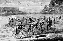 Une course française de vélocipèdes en 1869 (dessin de la revue).