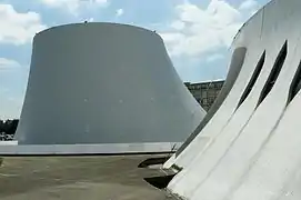 « Quand je dessine, seul le béton me permettra de maîtriser une courbe d'une portée aussi ample. Le béton suggère des formes souples, des contrastes de formes, par une modulation continue de l'espace qui s'oppose à l'uniformisation des systèmes répétitifs du fonctionnalisme international. »
