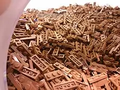 - Le plus grand nombre de briques : il s'agit d'une réplique du Tower Bridge de Londres, homologué par le Livre Guinness des records en . Elle est composée de 5 805 846 briques[50]. Elle mesure 44 m de large et 18 m de haut. Si le projet a duré un an au total, la construction seule a duré sept mois, monopolisant 28 constructeurs.