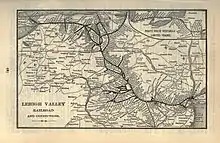 La Delaware, Lehigh, Schuylkill & Susquehanna Railroad Company fut créée le en Pennsylvanie pour acheminer le charbon anthracite de Mauch Chunk à Easton. Les travaux furent lancés en pour relier ces deux villes distantes de 73 km[n 1]. Ce chemin de fer faisait partie des nombreuses compagnies à voir le jour dans le nord-est des États-Unis. Il fut renommé Lehigh Valley Railroad (LV) le , et ouvrit en [n 1]. Le transport d'anthracite lui valut le surnom de Route of the black Diamond (route du diamant noir). Précédemment, l'anthracite était transporté par bateau sur la rivière Lehigh. L'arrivée du chemin de fer allait accélérer son transport.
