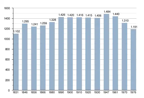 - Sources : INS, Rem. : 1831 jusqu'en 1970 = recensements, 1976 = nombre d'habitants au 31 décembre[2].