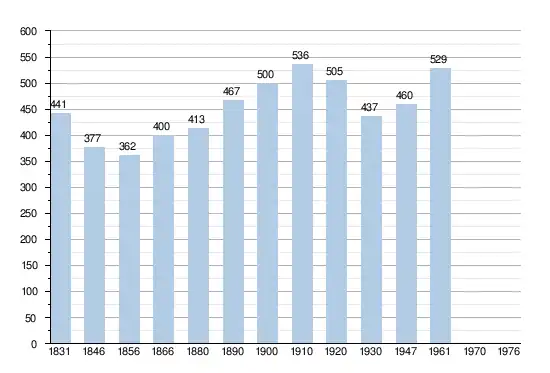 - Sources : INS, Rem. : 1831 jusqu'en 1970 = recensements, 1976 = nombre d'habitants au 31 décembre[2].