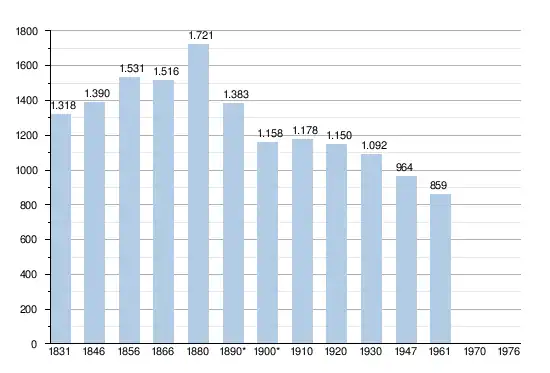 - Sources:INS, Rem:1831 jusqu'en 1970=recensements, 1976= nombre d'habitants au 31 décembre
