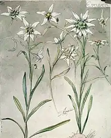 C'est l'une des plus célèbres plantes de montagne, en partie en raison de sa rareté[3]. Son nom provient de l'allemand edel, « noble », et weiß, « blanc ». En Suisse, l'edelweiss est souvent utilisé comme un véritable emblème national, il figure notamment sur la pièce de 5 francs suisses.