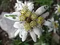 - Pollinisation : essentiellement (80 %) par des mouches. Le nectar d'edelweiss contient des acides aminés nécessaires à leur métabolisme[5] ;
