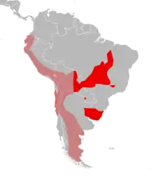 L'aire de distribution du Chat du Pantanal s'étend dans le centre-est du Brésil, l'Uruguay et les régions voisines de la Bolivie, du Paraguay et de l'Argentine. Ce félin vit depuis le niveau de la mer jusqu'à 2 000 mètres d'altitude[4],[11]. Le Chat du Pantanal doit son nom au Pantanal, une zone humide du centre de l'Amérique du Sud[1],[4], mais l'habitat est très varié. Au Brésil, le Chat du Pantanal occupe les forêts subtropicales, les forêts ouvertes et les prairies[7]. Au Paraguay, des forêts de fruticées et des zones de broussaille[7]. En Uruguay, des zones marécageuses[7]. Des observations ont été reportées dans les terres agricoles, ce qui montre que ce félin a une certaine tolérance à la perturbation humaine[12].