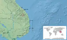 Cette espèce est endémique des provinces de Đắk Lắk et de Kon Tum au Viêt Nam[1]. Elle se rencontre entre 1 600 et 1 900 m d'altitude[2].