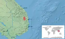 Cette espèce est endémique de la province de Gia Lai dans le centre-Sud du Viêt Nam[1]. Elle se rencontre entre 600 et 1 000 m d'altitude[2].