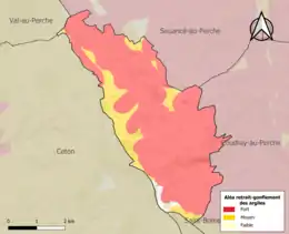 Le retrait-gonflement des sols argileux est susceptible d'engendrer des dommages importants aux bâtiments en cas d’alternance de périodes de sécheresse et de pluie. 98,2 % de la superficie communale est en aléa moyen ou fort (52,8 % au niveau départemental et 48,5 % au niveau national). Sur les 137 bâtiments dénombrés sur la commune en 2019, 135 sont en aléa moyen ou fort, soit 99 %, à comparer aux 70 % au niveau départemental et 54 % au niveau national. Une cartographie de l'exposition du territoire national au retrait gonflement des sols argileux est disponible sur le site du BRGM[17],[Carte 2].
