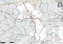 - il est également bordé, mais cette fois-ci dans sa partie orientale (en limite avec le territoire de la commune du Pont-de-Beauvoisin[3]), par la Bièvre, un affluent direct en rive gauche du Rhône. Cette rivière possède plusieurs affluents dont le ruisseau du Gazon, d'une longueur de 0,9 km, qui traverse le territoire communal et rejoint la Bièvre au niveau de l'ancienne commune de La Bâtie-Divisin.