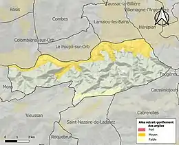 Le retrait-gonflement des sols argileux est susceptible d'engendrer des dommages importants aux bâtiments en cas d’alternance de périodes de sécheresse et de pluie. 23,1 % de la superficie communale est en aléa moyen ou fort (59,3 % au niveau départemental et 48,5 % au niveau national). Sur les 353 bâtiments dénombrés sur la commune en 2019, 330 sont en aléa moyen ou fort, soit 93 %, à comparer aux 85 % au niveau départemental et 54 % au niveau national. Une cartographie de l'exposition du territoire national au retrait gonflement des sols argileux est disponible sur le site du BRGM[23],[Carte 2].