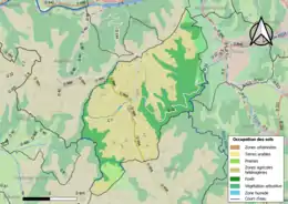 L'occupation des sols de la commune, telle qu'elle ressort de la base de données européenne d’occupation biophysique des sols Corine Land Cover (CLC), est marquée par l'importance des territoires agricoles (66 % en 2018), en augmentation par rapport à 1990 (62,5 %). La répartition détaillée en 2018 est la suivante : zones agricoles hétérogènes (63,1 %), forêts (30,8 %), milieux à végétation arbustive et/ou herbacée (3,2 %), prairies (2,9 %)[21].