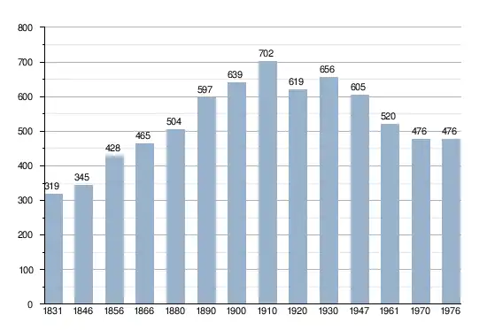 - Sources:INS, Rem:1831 jusqu'en 1970=recensements, 1976= nombre d'habitants au 31 décembre