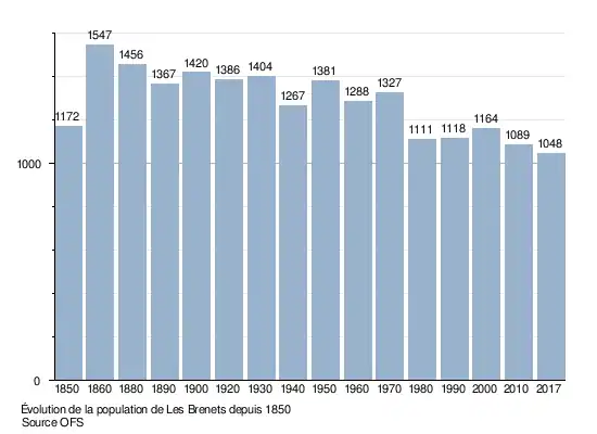 [xls], sur Office fédéral de la statistique (consulté le ). - Les Brenets et sa vieille église: 500 ans d'une Histoire Commune. Édition de la commune des Brenets, 2011