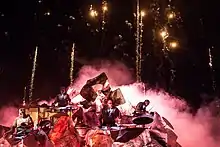 L'utilisation de la pyrotechnie est prépondérante dans la mise en scènes de tous les spectacles de la compagnie, elle intervient autant comme un élément de décors que comme un instrument de percussions supplémentaire.