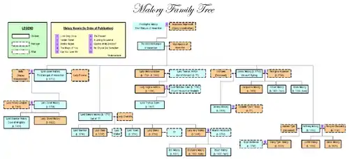 Les arbres généalogiques des deux familles sont mentionnés dans le tome 6 - La faute d'Anastasia.