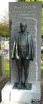Félix-Alexandre Desruelles est également l'auteur d'une statue de Léon Trulin où ce dernier apparaît debout, dos au mur, les poings serrés et le regard résolu. À ses pieds, une épitaphe explicite les circonstances et l'attitude : « ...et je saurai mourir courageusement... » Cette statue, qui domine la tombe du jeune résistant au cimetière de l'Est, est inaugurée le [4]. Elle fait singulièrement penser au monument des Fusillés lillois, avec lequel elle semble dialoguer et qu'elle complète en nous montrant celui qui était à terre et dont on ne pouvait pas voir le visage.