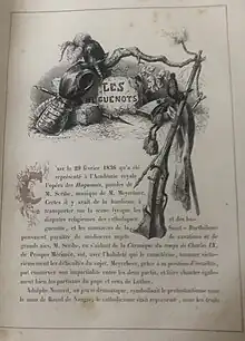Onzième opéra du compositeur et le deuxième écrit pour l’Opéra de Paris (après le triomphe rencontré par Robert le Diable), il s'inspire des événements ayant conduit au massacre de la Saint-Barthélemy le .