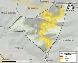 Le retrait-gonflement des sols argileux est susceptible d'engendrer des dommages importants aux bâtiments en cas d’alternance de périodes de sécheresse et de pluie. 29 % de la superficie communale est en aléa moyen ou fort (75,2 % au niveau départemental et 48,5 % au niveau national). Sur les 55 bâtiments dénombrés sur la commune en 2019, 52 sont en aléa moyen ou fort, soit 95 %, à comparer aux 94 % au niveau départemental et 54 % au niveau national. Une cartographie de l'exposition du territoire national au retrait gonflement des sols argileux est disponible sur le site du BRGM[22],[Carte 3].