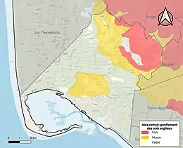 La commune fait partie du territoire à risques importants d'inondation (TRI) du littoral charentais-maritime, regroupant 40 communes concernées par un risque de submersion marine de la zone côtière, un des 21 TRI qui ont été arrêtés fin 2012 sur le bassin Adour-Garonne et confirmé en 2018 lors du second cycle de la Directive inondation, mais annulé en 2020[25]. Les submersions marines les plus marquantes des XXe et XXIe siècles antérieures à 2019 sont celles liées à la tempête du , à la tempête du , aux tempêtes Lothar et Martin des 26 et et à la tempête Xynthia des 27 et . D’une violence exceptionnelle, la tempête Xynthia a fortement endommagé le littoral de la Charente Maritime : douze personnes ont perdu la vie (essentiellement par noyade), des centaines de familles ont dû être relogées, et, sur un linéaire de l’ordre de 400 km de côte et de 225 km de défenses contre la mer, environ la moitié de ces ouvrages a subi des dommages plus ou moins importants. C’est environ 5 000 à 6 000 bâtiments qui ont été submergés et 40 000 ha de terres agricoles[26]. La commune a été reconnue en état de catastrophe naturelle au titre des dommages causés par les inondations et coulées de boue survenues en 1982, 1993, 1999 et 2010[27],[23].