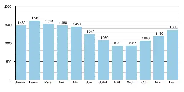 - Étiage = 0,35 m3/s = un peu plus du quart du module à 1,27 m3/s