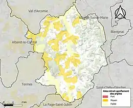 Le retrait-gonflement des sols argileux est susceptible d'engendrer des dommages importants aux bâtiments en cas d’alternance de périodes de sécheresse et de pluie. 23,6 % de la superficie communale est en aléa moyen ou fort (15,8 % au niveau départemental et 48,5 % au niveau national). Sur les 218 bâtiments dénombrés sur la commune en 2019, 56 sont en aléa moyen ou fort, soit 26 %, à comparer aux 14 % au niveau départemental et 54 % au niveau national. Une cartographie de l'exposition du territoire national au retrait gonflement des sols argileux est disponible sur le site du BRGM[18],[Carte 2].