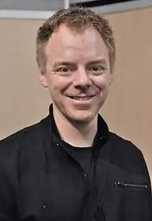 Delaf et Dubuc dédicaçant l'album Duel de belles, t. 4 de la série Les Nombrils, au Salon international du livre de Québec de 2010. | |