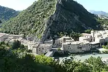 Le village est construit sur les rives de l'Eygues dans une cluse entre deux sites montagneux très proches l'un de l'autre. Il est un passage obligé pour relier les cols alpins et la vallée du Rhône[33]. Le chemin celtique devient la Voie Domitienne pour faire communiquer Arles avec Milan par Gap. Des restes de ses dalles sont trouvées lors de la construction de la route au XIXe siècle et lors de son goudronnage au XXe siècle[34].