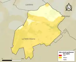 Le retrait-gonflement des sols argileux est susceptible d'engendrer des dommages importants aux bâtiments en cas d’alternance de périodes de sécheresse et de pluie. 79,5 % de la superficie communale est en aléa moyen ou fort (52,8 % au niveau départemental et 48,5 % au niveau national). Sur les 111 bâtiments dénombrés sur la commune en 2019, 87 sont en aléa moyen ou fort, soit 78 %, à comparer aux 70 % au niveau départemental et 54 % au niveau national. Une cartographie de l'exposition du territoire national au retrait gonflement des sols argileux est disponible sur le site du BRGM[19],[Carte 2].