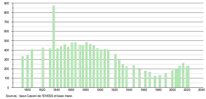 - Fiches Insee - Populations légales de la commune pour les années 2006, 2007, 2008, 2009, 2010, 2011, 2012, 2013, 2014, 2015, 2016, 2017, 2018, 2019, 2020 et 2021.