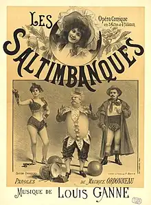 Les Saltimbanques est un opéra-comique en trois actes et quatre tableaux de Louis Ganne, sur un livret de Maurice Ordonneau, créé le au théâtre de la Gaîté à Paris dirigé alors par Louis Debruyère. C’est un triomphe et la centième représentation est très vite atteinte. On a comparé l’histoire de cette enfant trouvée recueillie par un groupe d’artistes d’un cirque ambulant à l’opéra Mignon d’Ambroise Thomas, un grand succès de l’Opéra-Comique. L'air le plus connu est la valse du final du premier acte « C’est l’amour ». Picasso en fera un tableau pendant la période rose entre 1904 et 1906.