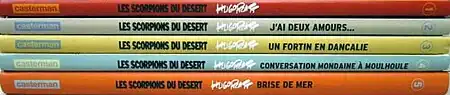 - Hugo Pratt, Les Scorpions du désert, Casterman, coll. « Univers d'auteurs », 5 vol., 2014-2015. Édition en couleur avec un nouveau lettrage et une nouvelle maquette[5].