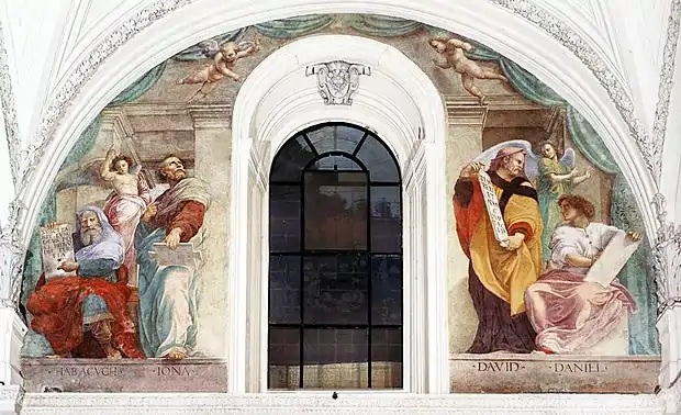 Les figures représentées sont celles d'Habacuc, de Jonas, David et Daniel.
