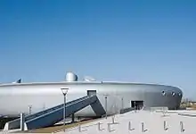 Parfois comparé à un vaisseau spatial, la forme du bâtiment en béton est le résultat de son toit en bois arrondi couplé à une façade arrondie face à des bandes d'aluminium. En plus des piscines en acier inoxydable, les zones de fitness et de loisirs sont réparties sur trois niveaux. De grandes lucarnes sur le toit assurent une utilisation maximale de la lumière du soleil dans le bâtiment[4]. Le centre aquatique se compose d'une piscine de 25 mètres, de deux bassins pour enfants, de bains à vagues, de toboggans, d'un solarium, d'un sauna et d'un centre de remise en forme[2].