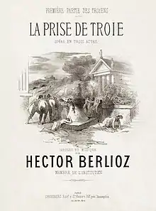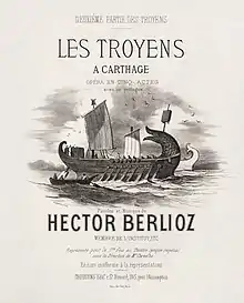 Les Troyens est un opéra en cinq actes d’Hector Berlioz sur un livret du compositeur inspiré de l’Énéide de Virgile. Il fut donné pour la première fois, mutilé de nombreuses manières — les deux premiers actes supprimés, divers morceaux également coupés, le tout étant présenté sous le titre Les Troyens à Carthage — le au Théâtre lyrique à Paris[note 1], sous la direction d’Adolphe Deloffre. La première partie, La Prise de Troie, ne sera créée que le au Großherzoglichen Hoftheater de Karlsruhe, dans une version allemande, sous la direction de Felix Mottl, à l’occasion de la première représentation intégrale des Troyens en deux soirées (la seconde partie, Les Troyens à Carthage, fut jouée le lendemain [note 2]).La première intégrale des Troyens en une seule soirée ne fut donnée que le , au Théâtre des Arts de Rouen[1].