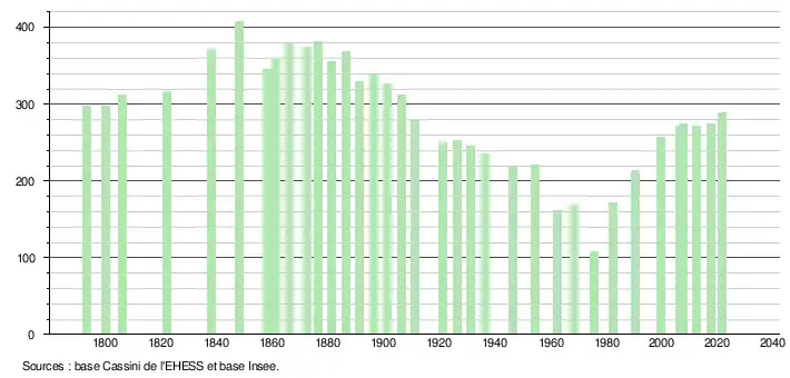 En 2021, la commune comptait 289 habitants[Note 3], en augmentation de 2,12 % par rapport à 2015 (Haute-Savoie : +5,99 %, France hors Mayotte : +1,84 %).