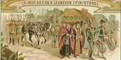 Jacques Cambry décrit comme la survivance d'une tradition druidique[40] la procession du gui (fête de l'éguigané, qui avait lieu entre Noël et le Nouvel An) à Landerneau et à Lesneven :