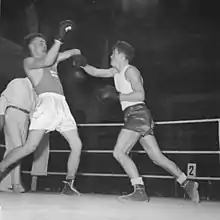 Leszek Drogosz (à droite) contre le champion olympique Ján Zachara, le 4 juillet 1952.